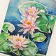 - 睡蓮絵画蓮アートオリジナル絵画水彩花手描きAlyonArtによって描かれた 材料:プロ品質のアーティストの水彩絵の具、アーティスト品質の水彩紙。 100%オリジナルの手描きのファインアート。 サイズ:15.2х20.3cm; 6 x 8インチ(画像のサイズ、白いフィールドを除く) フレームは含まれていません。