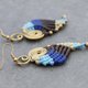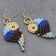 これは、黄色のビーズと一緒に織られたピンク、パープル、グリーン、ブルーの綿ワックスコードで作られた手織りのイヤリングです。イヤリングは自然な真鍮の耳のワイヤーにぶら下がり