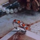 - |Hongyun・Hemei|Aグレード翡翠氷ガラスレッド翡翠研磨卵表面3.5×1.2mm(1つ選択)スターリングシルバーメッキ18K欧米の有名チェーンバスケット空スタイルリング、調整可能、証明書付き