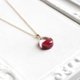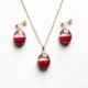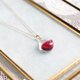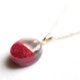 透明な上半分と、しっとりとした情緒的な光沢のある赤という下半分とのコントラストが鮮やかなペンダント。