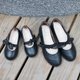 オールブラックの本革バレエシューズは、