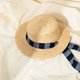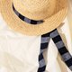 - -長い麦わら帽子 -ラフィア麦わら帽子 -パーサイトを飾るグレーブルーリボン -温泉と夏にさわやかなタッチを加えるシンプルで簡単