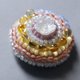 小さな作品を作るとき、まずメインのビーズを選びます。 そのビーズがいちばん美しく見えるように、隙間なく刺繍を重ねていくと── 色とりどりのビーズたちが、まるでおしゃべりしているような、にぎやかな仕上がりになります。