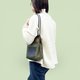 nico カーキ×ブラック 撥水加工ナイロン素材×イタリアンレザー巾着バッグ - ショルダーバッグ - ナイロン グリーン