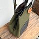 nico カーキ×ブラック 撥水加工ナイロン素材×イタリアンレザー巾着バッグ