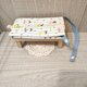 バレリーナ柄:日本製コットンリネン生地、厚手の接着芯、スナップボタン、ストラップの長さ約17cm、花形ファスナーヘッド