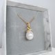 - 天然のホワイトバロック淡水パールネックレス。優美で洗練されたデザインに、煌めくゴールドリボンが添えられ、925スターリングシルバーにゴールドプレートを施しました。