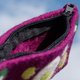 厳選されたメタルファスナーと、可愛らしい羊毛フェルトボールのチャームがあしらわれています。