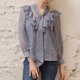 満天の星空を散りばめたような小花柄のフリルブラウスは、清涼感のあるブルーの色合いと繊細なフリルデザインが、日々の装いに優雅さと遊び心をプラスします。軽やかで通気性の良いシフォン素材を使用しており、快適な着心地はもちろん、ほのかな透け感が魅力。まるでそよ風が吹き抜ける星空の下にいるような、心地よい着用感をお届けします。特徴的なVネックデザインは、洗練された雰囲気を演出しつつ、女性らしい柔らかな気品を添え、周囲の視線を自然と引き寄せます。
