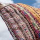▲手作業で丁寧に作られた、手紡ぎコットンの温もりと鮮やかな配色が織りなす、個性豊かな色彩。装いのアクセントとして、自然体で美しい体験へと誘います。