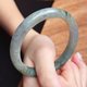 - 【名称】フローラルグリーン翡翠バングル 【サイズ】18号 内径56.3mm 幅9.5mm 厚さ7.6mm 【原産地】ミャンマー 【色】グリーン/ホワイト 【備考】天然ミャンマー産翡翠A貨 【品番】瓔珞バングル0107