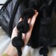 レザーの切り替え部分はモヘアのクロシェ編みで、