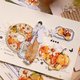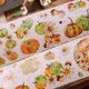 - パンプキンパイ レトロなカボチャと花、フルーツの和紙PET貝殻光沢ダイカット手帳用マスキングテープ
