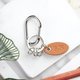 「ハンドメイドレザータグ付きカラビナキーホルダー。名前刻印も承ります。」