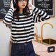 ベーシックでシンプルなウールストライプニットは、どんな季節のワードローブにも欠かせない、飽きのこない一枚です。