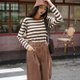 クラシックな太めのストライプと配色襟は、レトログリーンとキャラメルブラウンからお選びいただけます。