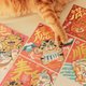 厚手のアイボリー紙にカラー印刷後、箔押し加工