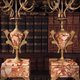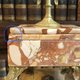 フランス ナポレオン 3 世のローズ ピンクの大理石ベース 5 ポート暖炉キャンドルと 100 年前の燭台をペアで販売