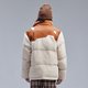 ストリート綿服/シーパーパッチワークPU皮、ベージュとコーヒー色の多次元衝突、レベルとコントラストがあって、視覚感覚の高低の錯乱を形成して、不規則な貼り布はレーザーカットを採用して、インク印刷デザインは局部を彩って、内側にパール綿を充填して、軽くて弾力があり、保温ファッションは多くの場合に適しています。]