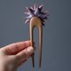 大きなポリマークレイ製のエケベリア・マディバ多肉植物があしらわれた、精巧な木製かんざし。