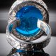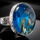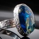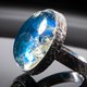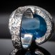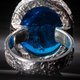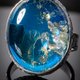 この一点物のリングには、天然のきらめきを宿した深いブルーの琥珀がセットされています。動くたびに光が戯れる、魔法のような輝きを放ちます。鮮やかな真夜中のブルーから、海の輝きを思わせるトーンへと美しく変化する色彩は、このリングにまるで生命が宿っているかのような感覚を与えます。