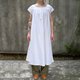 - 20世紀初頭に作られたアンティークリネンドレスは、自然な色合いのリネン生地が織りなす厚みと軽やかさのコントラストが魅力です。ネックラインや胸元のギャザー、厚みのあるシェルボタン、手縫いのボタンホール、脇下やスカート両サイドのパネル縫製、そして赤いイニシャル刺繍など、細部に至るまで時代の息吹を感じさせるディテールが散りばめられています。