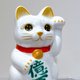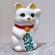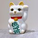 清水焼 花晶釉 招き猫 白 1億両 左 特小