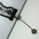 - ブラックハンドメイドレースドレープビーズブレスレットPdB厳選スペインアンティーク 約16センチ 拳をレースとメタルチェーンの中央に入れて、