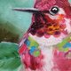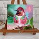 ハチドリ 油絵 鳥 小さなアート 鳥の絵 花の絵 鳥のアート