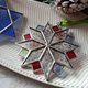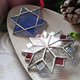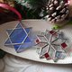 ガラスの雪の結晶サンキャッチャー 2個セット。ツリーや窓辺のクリスマスデコレーションに。シンプルなステンドグラス。青いメルカバガラスの星。新年のツリー飾り。クリスマスツリー飾り。ヒュッゲなクリスマスのギフトに。ステンドグラスのクリスマスの星。