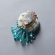 小さな作品を作るとき、まずメインのビーズを選びます。 そのビーズがいちばん美しく見えるように、隙間なく刺繍を重ねていくと── 色とりどりのビーズたちが、まるでおしゃべりしているような、にぎやかな仕上がりになります。