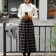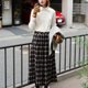 - チェック柄のスカートパンツは、ワイドなシルエットが体型をカバーし、着痩せ効果も期待できます。歩くたびに揺れる裾が、ゆったりとした優雅な雰囲気を演出。柔らかなモノトーンの色合いは、秋冬の装いに合わせやすく、どんな方にも自然に溶け込み、心地よい癒しをもたらします。 足首丈のすっきりとしたカッティングは、洗練された印象を与え、ウエストは体にフィットして快適な着心地。空気を含んだような軽やかさで、ヒップから太ももにかけてのラインを美しく見せます。サイドポケットは小物の収納にも便利です。