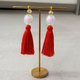 鮮やかな朱赤のタッセルに、やわらかく光を反射するオーロラ加工のアクリルビーズを組み合わせ、ルピナスの明るさと凛とした佇まいを耳元でそっと感じられるようなデザインにしました。