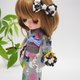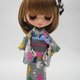 - I made a kimono with cute modern bird pattern fabric With ribbon and back