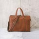 構造が明確な本革ブリーフケースは、ダブルフラップ開口部とノートPC収納ポケットを備え、書類、ツール、日常の小物まですっきりと収まります。