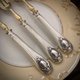 - このタイプのフォークは左側が幅広で面取りが施されており、ケーキを切りやすくなっており、形状も滑らかで美しいです。今回のハンドルはスターリングシルバーで作られており、美しい組み合わせです。ゴールドとシルバーの精巧なギョーシェ模様が施されており、コレクションする価値があります。