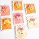 手作りの切手風の台紙に留めてお届けします。