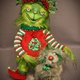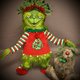 顔と腕は(私が)特別なポリマークレイで造形されており、割れたりひび割れたりしません。グリンチはホロファイバーで詰められ、脚、胴体、首、頭にはワイヤー(骨格)が入っています。非常に柔軟でポーズが取れ、様々な姿勢をとることができ、グリンチは適度な重さがあり、しっかりと自立します。