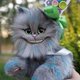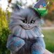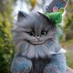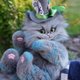 顔と足はポリマークレイで作られ、パステルカラーで彩色されています。顔はフェイクファーで覆われています。