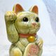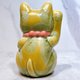 清水焼 招き猫(緑と黄色) - 開運(右)