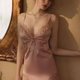 ピンクのサテンのドレス、快適で柔らかい睡眠、寝間着、単色、ピンク、レース