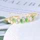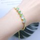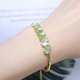 - |フレンチロマンス| ビルマ産グレード A 翡翠、アイシーブルー、エメラルドグリーン、ホワイト、不規則な形、6×2mm (各タイプの石1 個)、18kイエローのスターリングシルバーメッキ、マルチビーズデザイン、調整可能、証明書付き (小さな手にも適しています)。