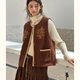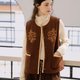 【城野牧歌】フレンチレトロ立体刺繍ブークレニット配色ラウンドネックベスト