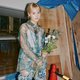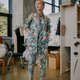 キラキラと上品に光るラメの糸を織り込んだ透け感のあるオーガンジーに Holiday harvest柄をプリントしたシャツ です。
