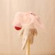 彼女はロリポップを持ち、ピンクのベールをかぶり、顔には隠しきれない甘い笑顔を浮かべています。