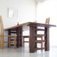 このテーブルはそんな地震による危険からできる限り退避できるよう、様々な角度からアイデアとデザインを編み出して仕上げられた一品です。とはいえデザイン性や機能性も、もちろん忘れてはいません。天板は厚さ45ミリのブラックウォールナットで仕上げ、堂々とした風格が安心感を与えてくれます。深い色合いは洋風にも和風にもしっくりと馴染み、ダイニングの主役となってくれるでしょう。