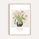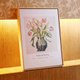 水彩イラスト、植物や花、春の雰囲気、静物画スタイル、モダンなナチュラルスタイル、エレガントな空間、カフェレイアウト、ピンクシリーズ、チューリップテーマ、フレームレスアート出力