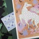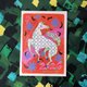 私の筆から生まれた白馬は、オレンジと赤のグラデーションの中で躍動します。