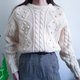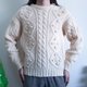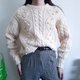 ビンテージ フィッシャーマン クリーム ウール ニット セーター、プルオーバー ケーブル ニット セーター
