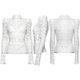 Exquisite pleated ruffled stand collar, elegant bubble sleeves.
